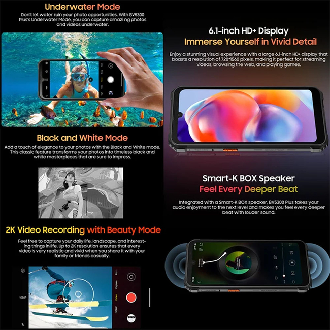 Το Blackview BV5300 Plus είναι ένα ανθεκτικό smartphone σχεδιασμένο να αντέχει στις πιο δύσκολες συνθήκες. Με την robust κατασκευή του και τις κορυφαίες προδιαγραφές του, είναι ιδανικό για φυσιολάτρες και επαγγελματίες.