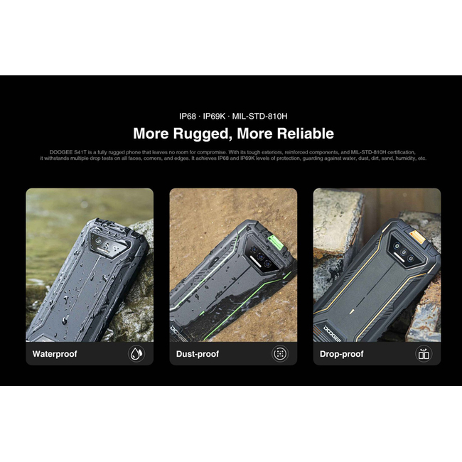 Με πιστοποίηση IP68/IP69K και πρότυπο MIL-STD-810H, το S41T είναι σχεδιασμένο για να αντέχει σε ακραίες συνθήκες χρήσης και περιβάλλοντα.