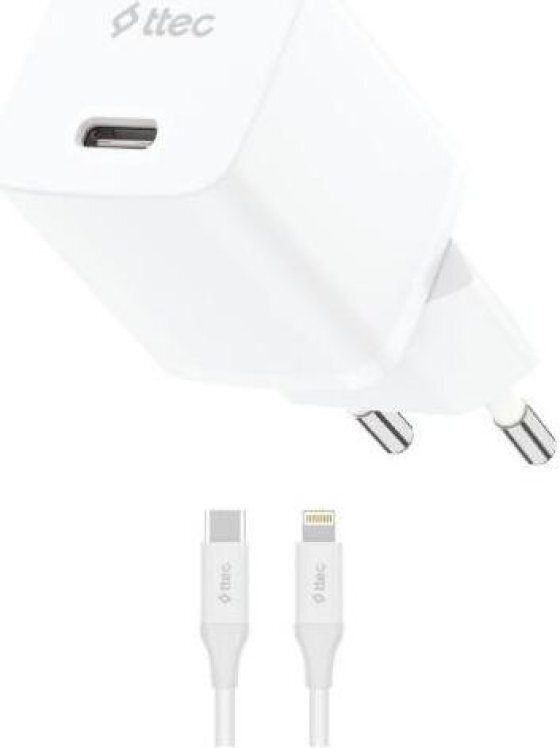 TTEC Φορτιστής Travel SmartCharger GaN 30W PD με Καλώδιο USB C σε Lightning Λευκό