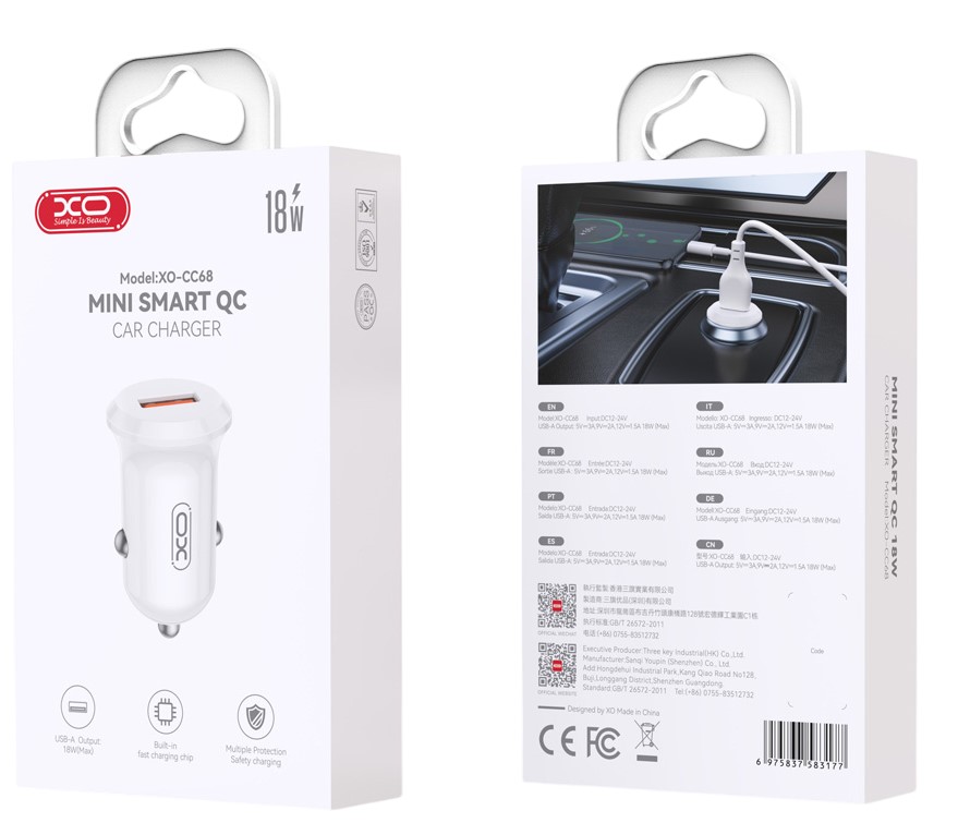 XO Φορτιστής Αυτοκινήτου CC68 Mini Smart Single QC18W