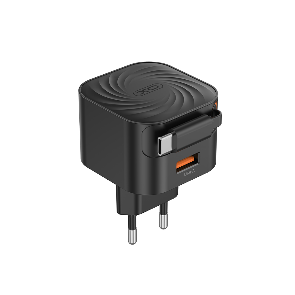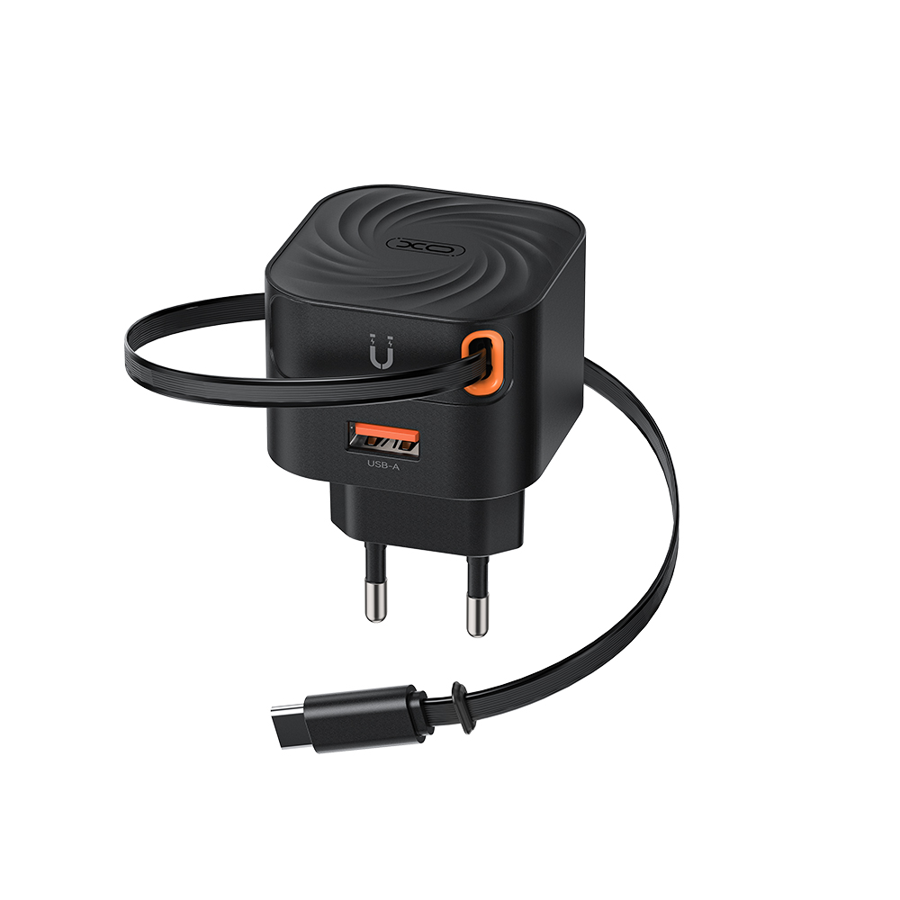 XO Φορτιστής Ταχείας Φόρτισης με Ανασυρόμενο Καλώδιο Type-C και 1 Θύρα USB-A EU 20W L165