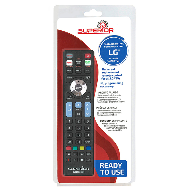 Το Τηλεχειριστήριο Αντικατάστασης Για Τηλεοράσεις Lg από την Superior Electronics είναι ένα καθολικό τηλεχειριστήριο σχεδιασμένο για όλες τις τηλεοράσεις LG που παράχθηκαν από το 2000 και μετά. Αυτό το τηλεχειριστήριο προσφέρει άμεση λειτουργία χωρίς την ανάγκη προγραμματισμού, επιτρέποντάς σας να ξεκινήσετε τη χρήση του μόλις τοποθετήσετε τις μπαταρίες.