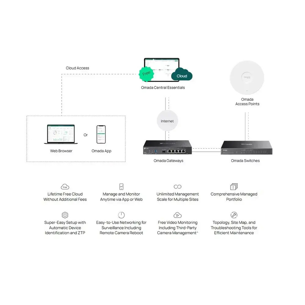 Cloud ManagementOmada web interface and Omada app