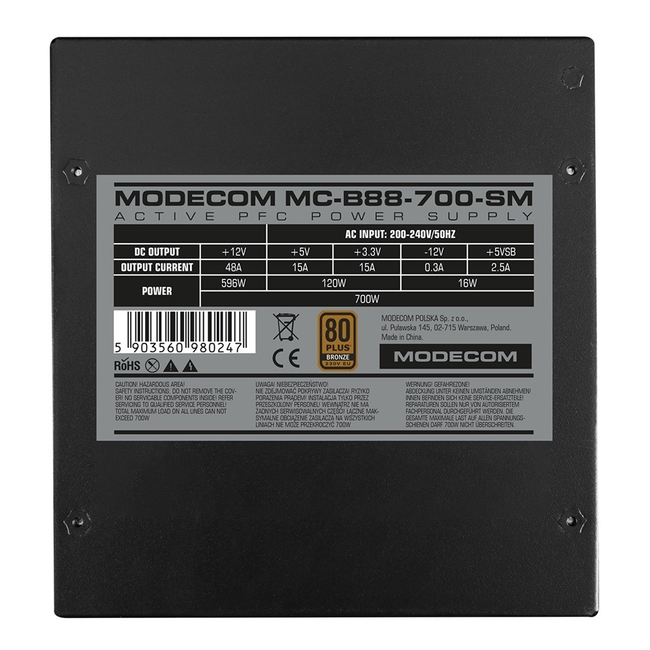 Τροφοδοτικό 700W Modecom MC-B88-700-SM 80+ BRONZE 230V EU