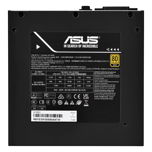 Ισχύς 850W για Μέγιστη Απόδοση | Το τροφοδοτικό Asus Prime παρέχει ισχύ 850W, προσφέροντας την ενέργεια που χρειάζεται ο υπολογιστής σας για να λειτουργεί άψογα ακόμα και στις πιο απαιτητικές συνθήκες.