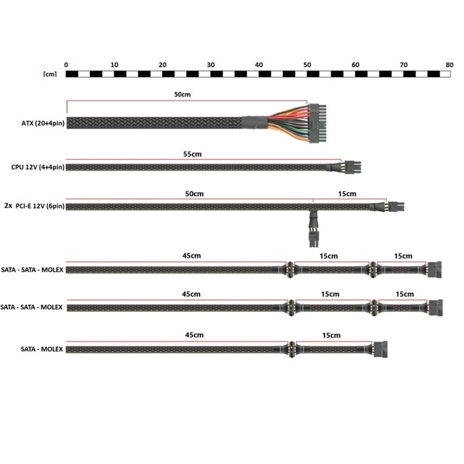 - 2x PCI-E 6+2pin connector (50+15cm long cable, flat black)