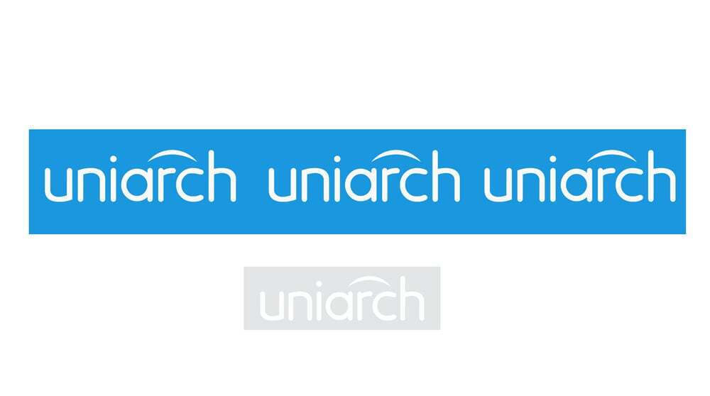 Σετ αυτοκόλλητα που περιλαμβάνει ένα αυτοκόλλητο μήκους 1.2m με επιγραφή Uniarch, και ένα αυτοκόλλητο με διακεκομμένα γράμματα.
