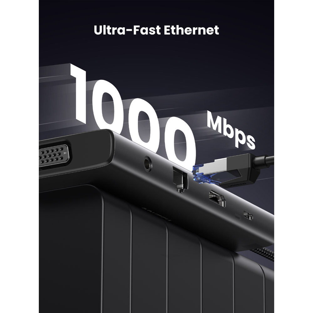 UGREEN Μετατροπέας Hub USB C CM639 11 σε 1 HDMI VGA 2x USB C 3.2 2x USB SD TF RJ45 AUX 3.5mm PD 4K 60Hz 45520