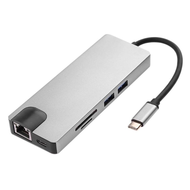Docking Station ATC 8in1 USB C hub RJ45 HDMI USBx2 VGA SD TF USB3.0x2