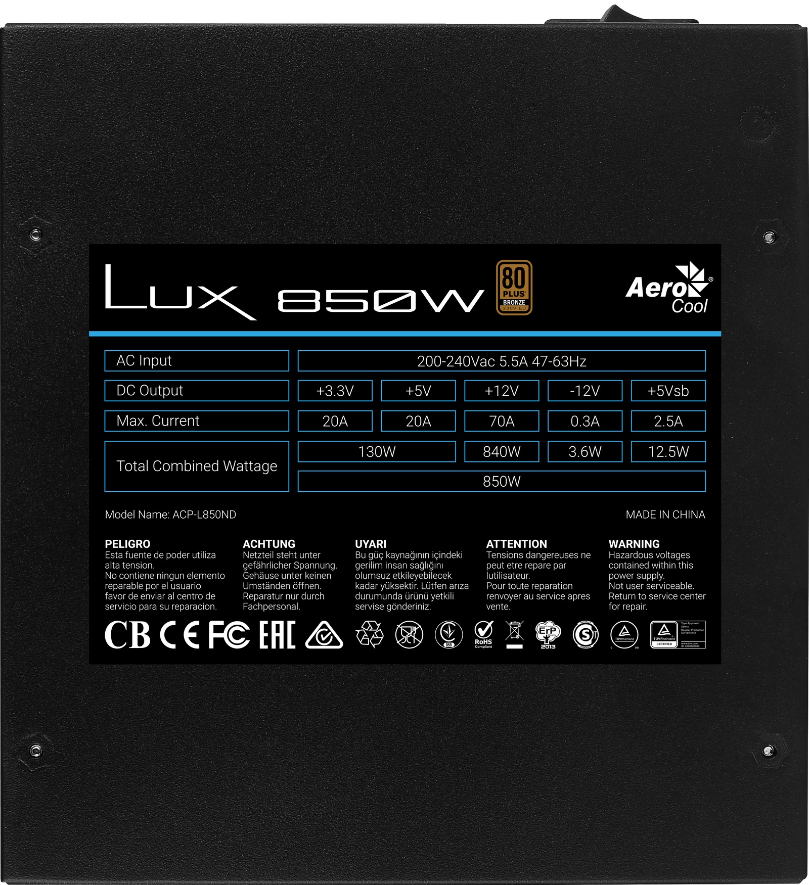 Τροφοδοτικό 850W Aerocool LUX unit 20+4 pin ATX Black
