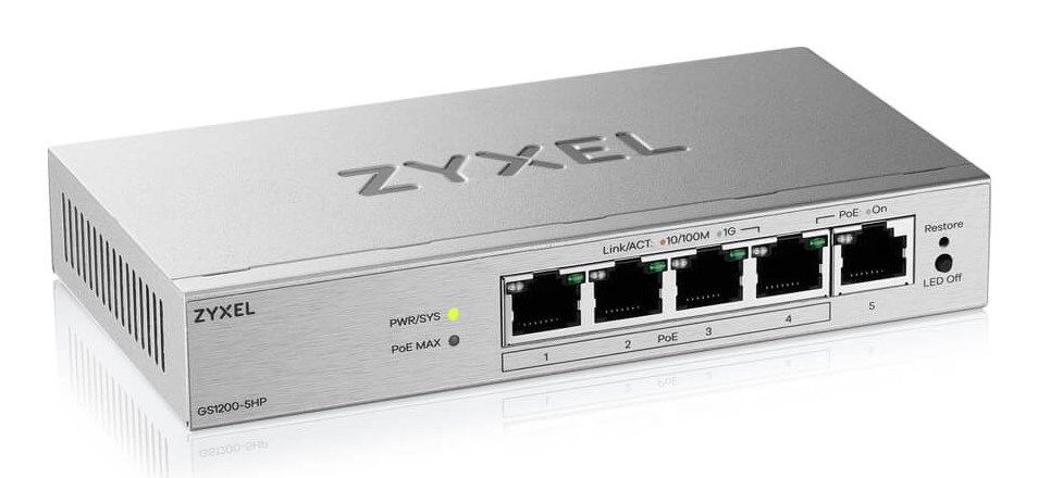 Network Switch Zyxel GS1200-5HPV3 Managed L2 Gigabit Ethernet (10/100/1000) (PoE) Desktop Grey