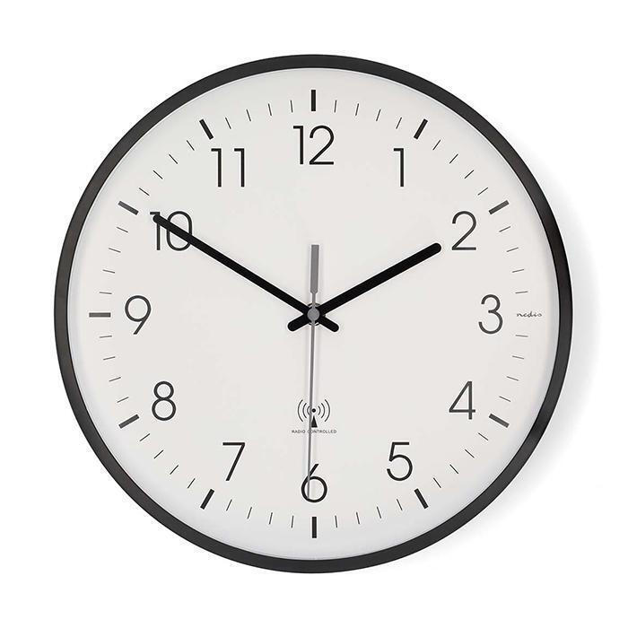 NEDIS Ρολόι τοίχου αθόρυβο και με ραδιοελεγχόμενη ακρίβεια μαύρο λευκό