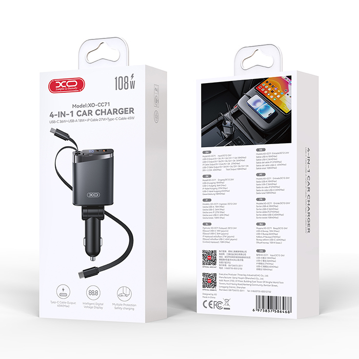 XO Φορτιστής Αυτοκινήτου CC71 Metal 108W