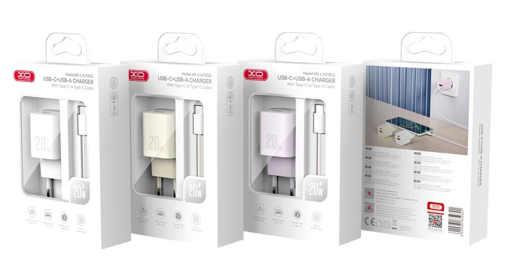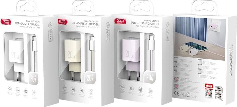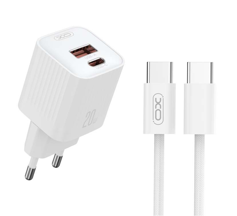 XO Φορτιστής PD20W με 2 εξόδους 1xUSB-A και 1xUSB-C με αποσπώμενο καλώδιο USB Type-C