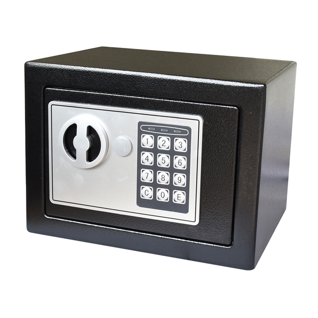 Χρηματοκιβώτιο της Powertech με δύο ενισχυμένους πύρους κλειδώματος, κατασκευασμένο από ατσάλι. Διαθέτει προγραμματιζόμενη ψηφιακή κλειδαριά, 3-8 ψηφίων, που σας επιτρέπει να επιλέγετε τον συνδυασμό που επιθυμείτε και κλειδαριά ασφαλείας με κλειδί που ανοίγει το χρηματοκιβώτιο σε περίπτωση ανάγκης.