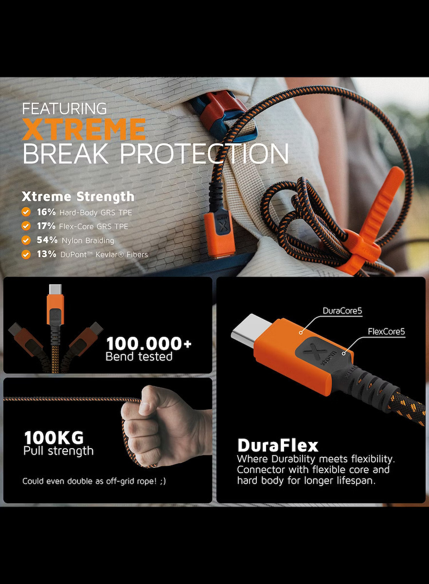 Xtorm Braided / Spiral USB 2.0 Cable USB-C male - USB-C 240W PD Πορτοκαλί 1.5m MOB.ACC.00649