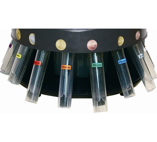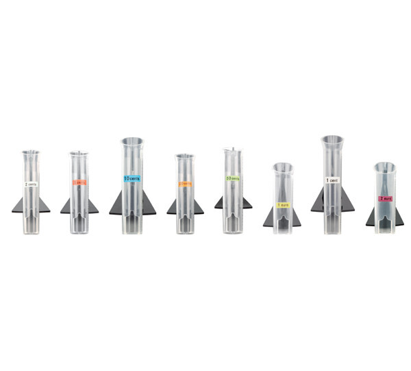 Οκτώ σωλήνες διαλογής κερμάτων-νομισμάτων. Εύκολη εγκατάσταση για χρήση με το μηχάνημα καταμέτρησης κι διαχωρισμού κερμάτων CC 202. Κάψουλες διαλογής κερμάτων του 1 cent, 2 cent, 5 cent, 10 cent, 20 cent, 50 cent, 1 Ευρώ και 2 Ευρώ.