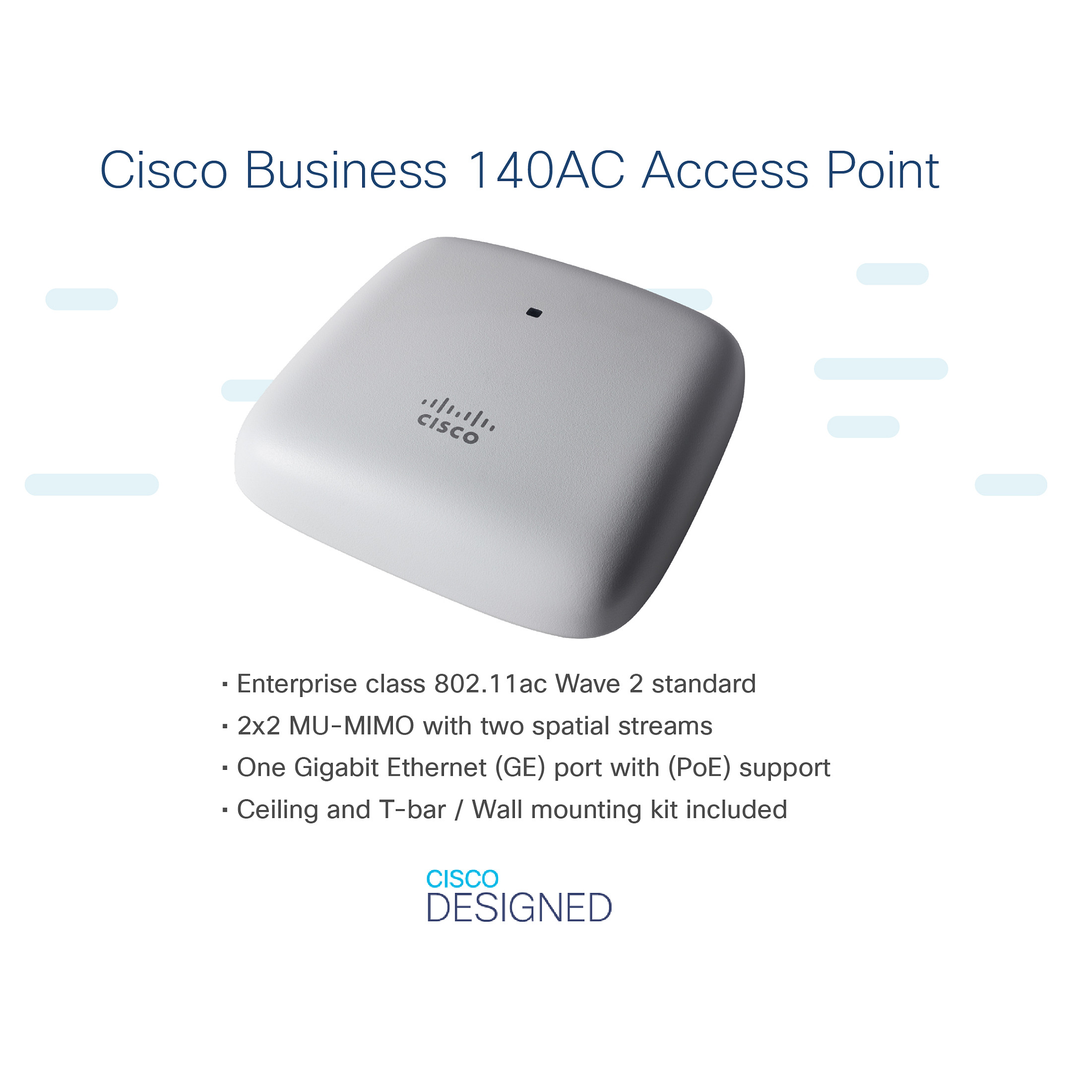 The Cisco Business 140AC Access Point is designed for modern enterprise environments, providing top-notch wireless connectivity. With its 802.11ac Wave 2 performance, it significantly improves network efficiency and user experience.