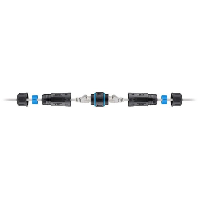 Αδιάβροχος σύνδεσμος καλωδίων δικτύου, ιδανικός για συνδέσεις δικτύου σε εξωτερικούς χώρους. Διαθέτει αδιαβροχοποίηση επιπέδου IP68, προστατεύοντας την συνδεσμολογία από σκόνη και νερό.