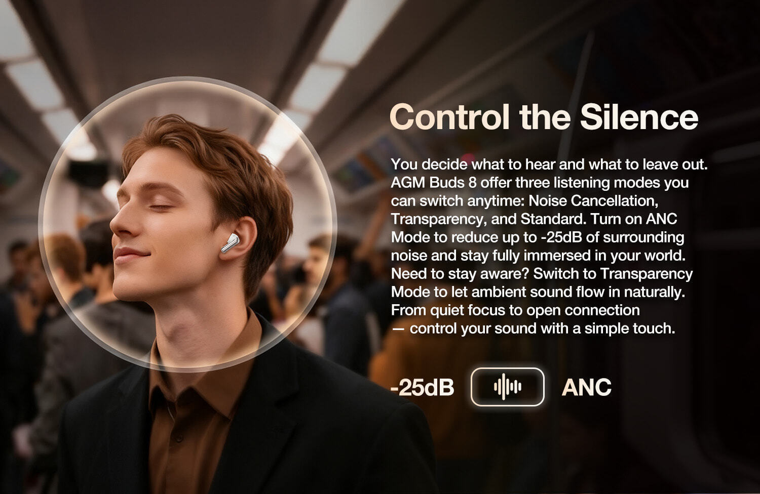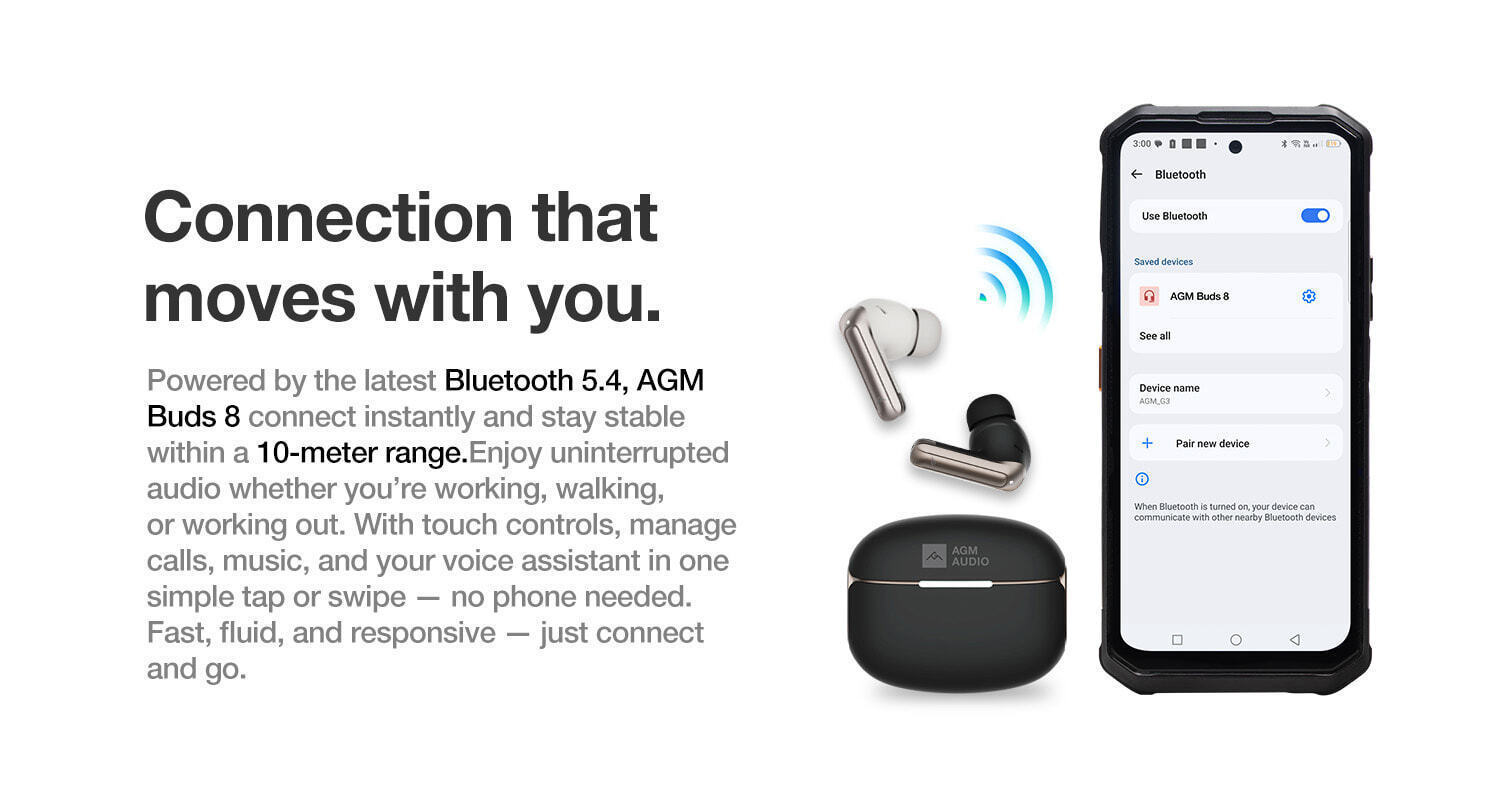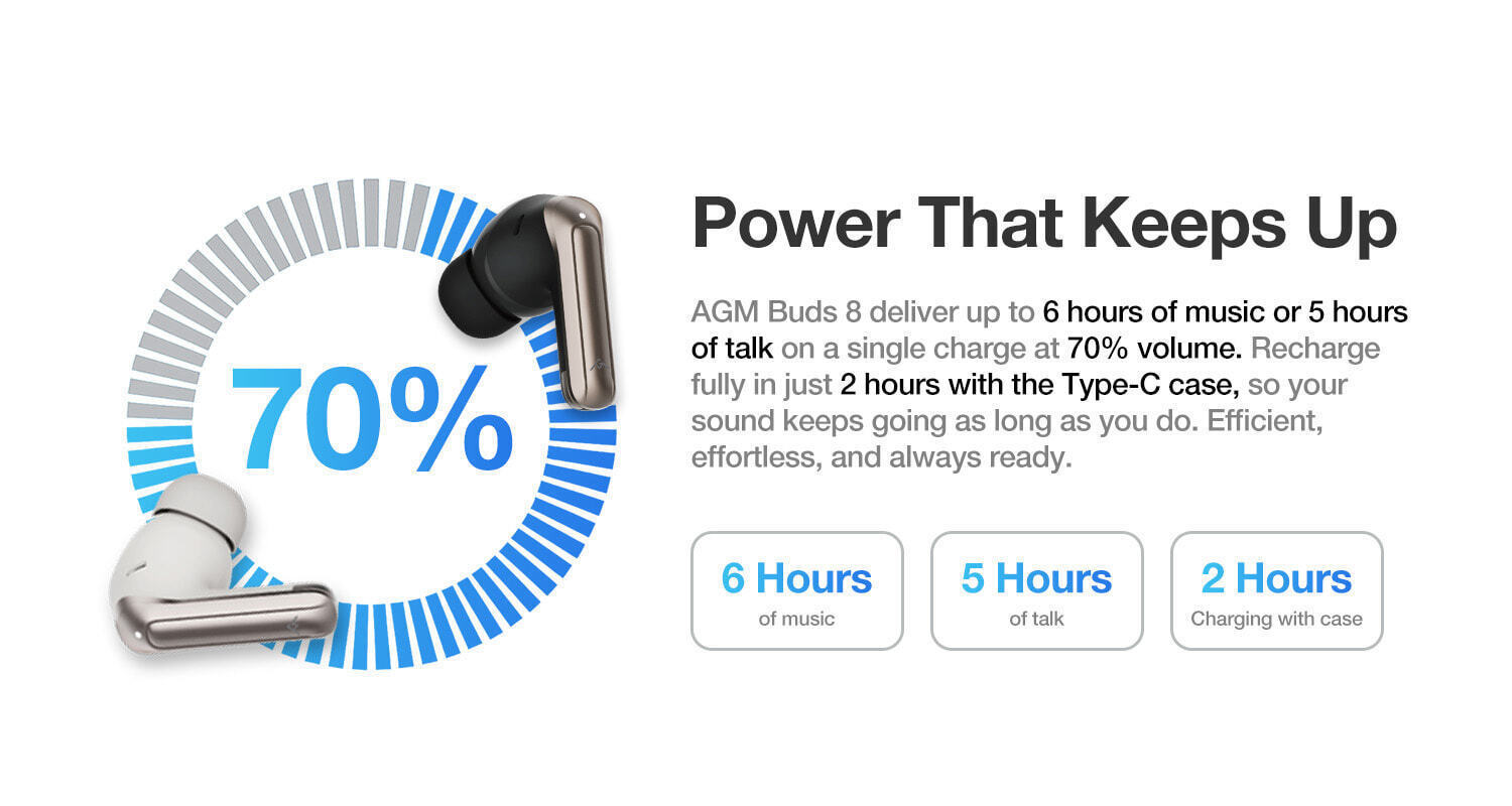 AGM Bluetooth Earbuds Buds 8 5.4 ANC IPX4 Beige