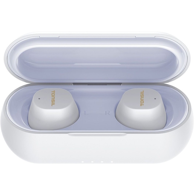 The Tonsil T45BT Bia?e is a pair of wireless in-ear headphones designed for convenient use, offering exceptional stereo sound with dynamic drivers that guarantee deep bass, natural midrange, and detailed treble.