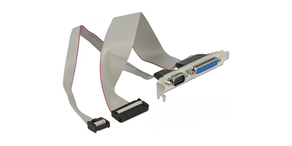 - 1 x 25-pin Parallel pin header female socket, 1 x 9-pin Serial pin header female socket