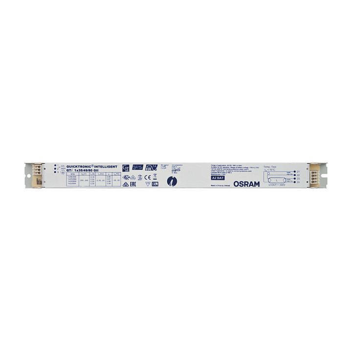 The Osram QTI 1X35/49/80 GII is a cutting-edge second-generation (GII) QUICKTRONIC INTELLIGENT electronic control gear (ECG) ballast. This ballast is specifically designed for the single-lamp operation of T5 fluorescent lamps, which have a diameter of 16 mm.