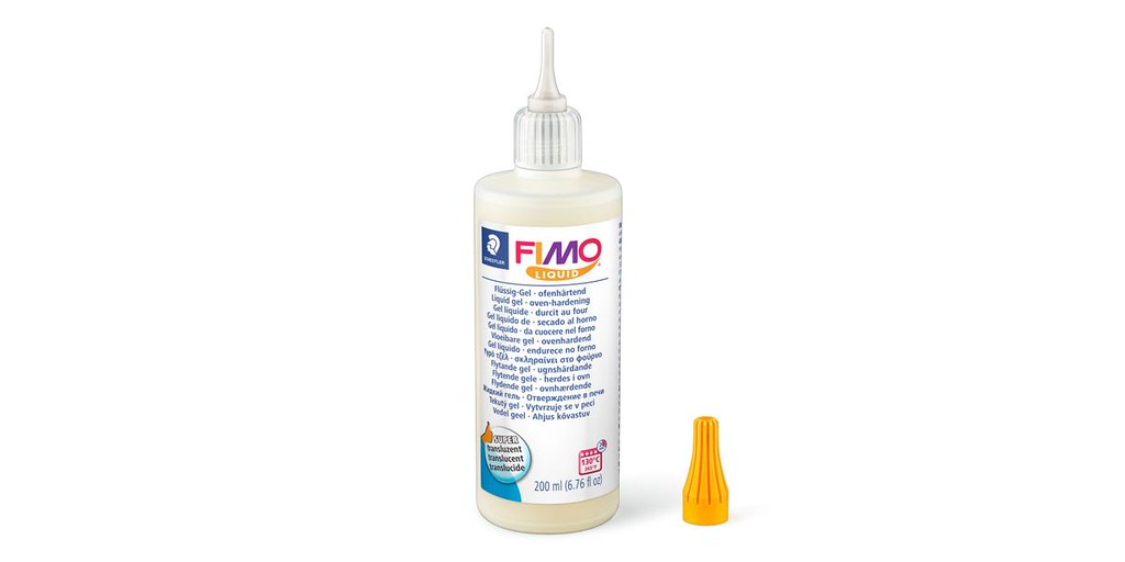 The gel's thick, fluid consistency allows for easy application, while its flexibility after hardening ensures durability and resilience in the finished pieces. Compatible with all FIMO modelling clays, it is versatile for various techniques.