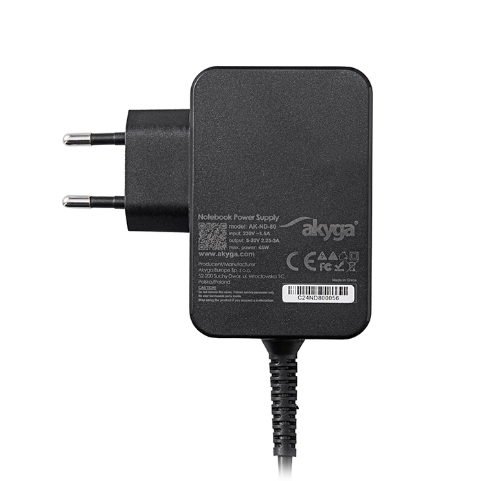 AKYGA Universal Charger and Power Supply AK ND 80 GaN 45W with USB C Cable