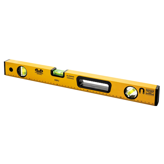 DELI αλφάδι DL290500 με 3 μάτια & χάρακα, μαγνητικό, 50cm