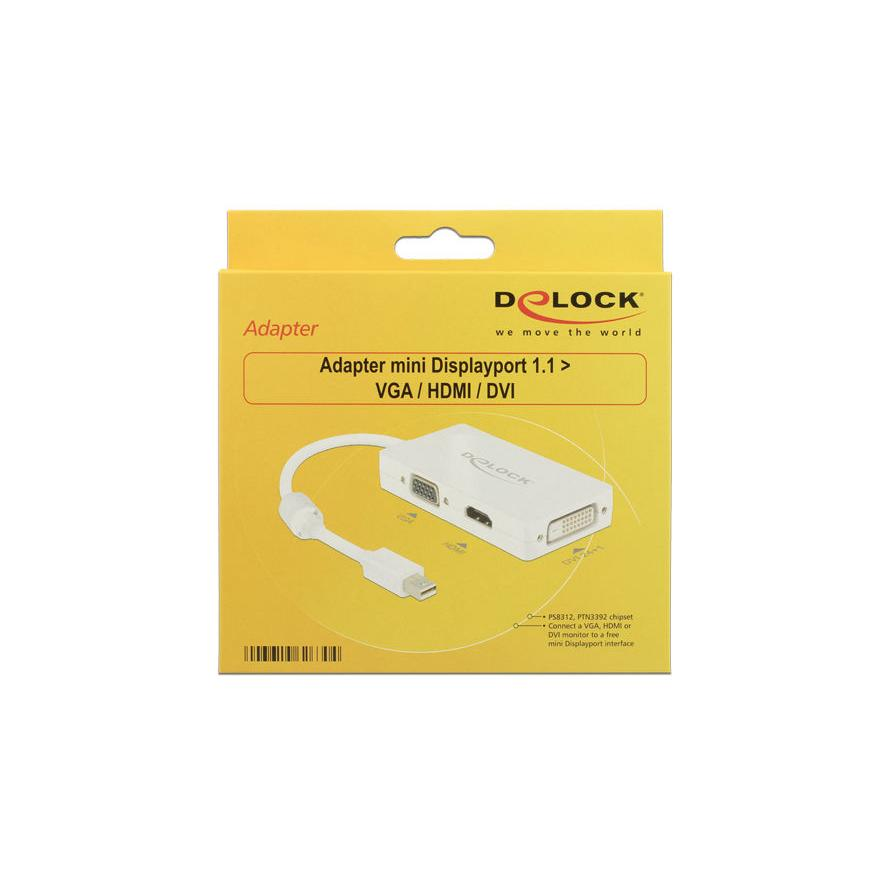 Αντάπτορας mini DP Delock -> D-Sub15/HDMI/DVI white