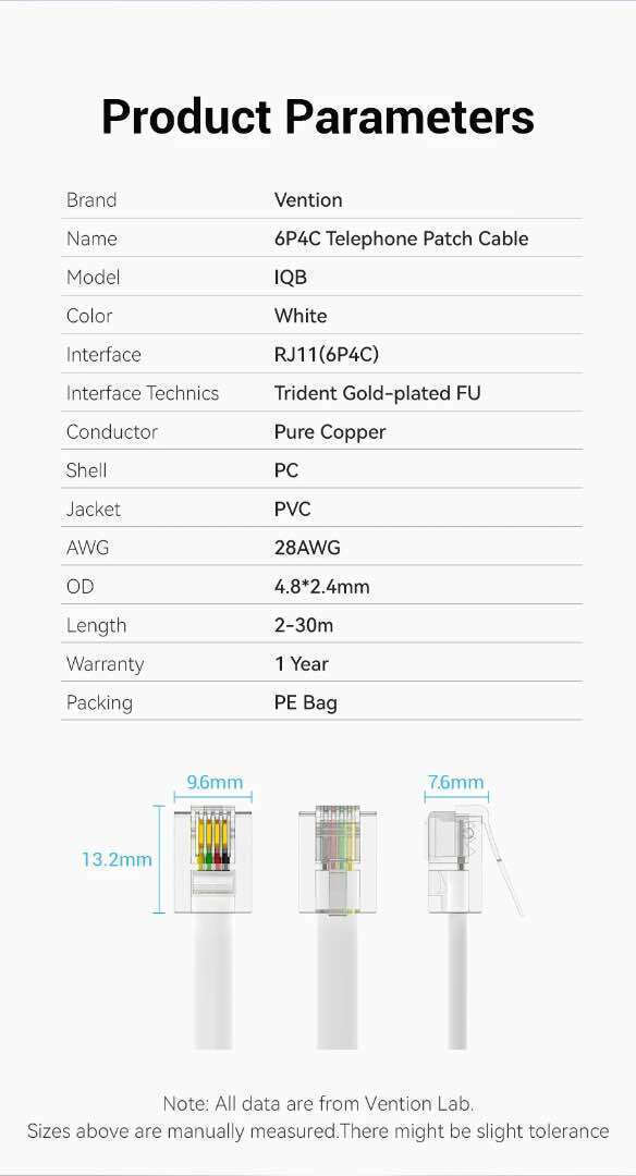 Telephone Cable VENTION Flat 4-Core RJ11 6P4C 20 m White