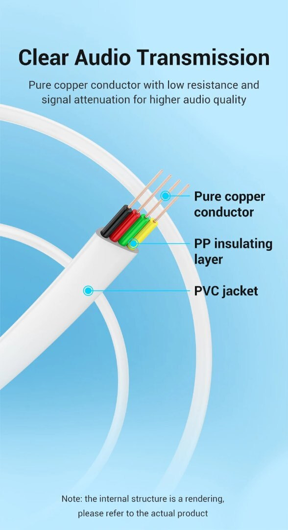 VENTION Flat 4-Core Telephone RJ11 Cable with 6P4C Plug 5M White