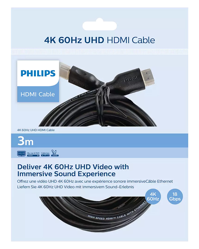 PHILIPS καλώδιο HDMI 2.0 SWV5531, 4K/60Hz, 18Gbps, CCS, 3m, μαύρο