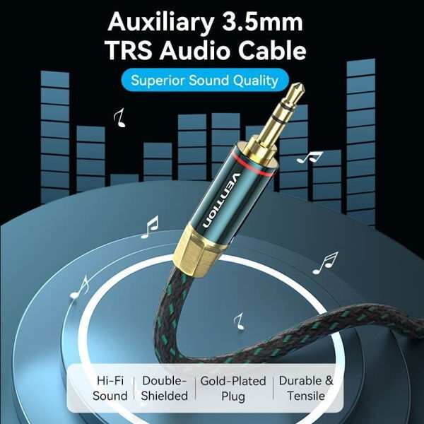VENTION Audio Cable 3.5mm TRS Male to Male 0.5m Cotton Braided Green Copper Type