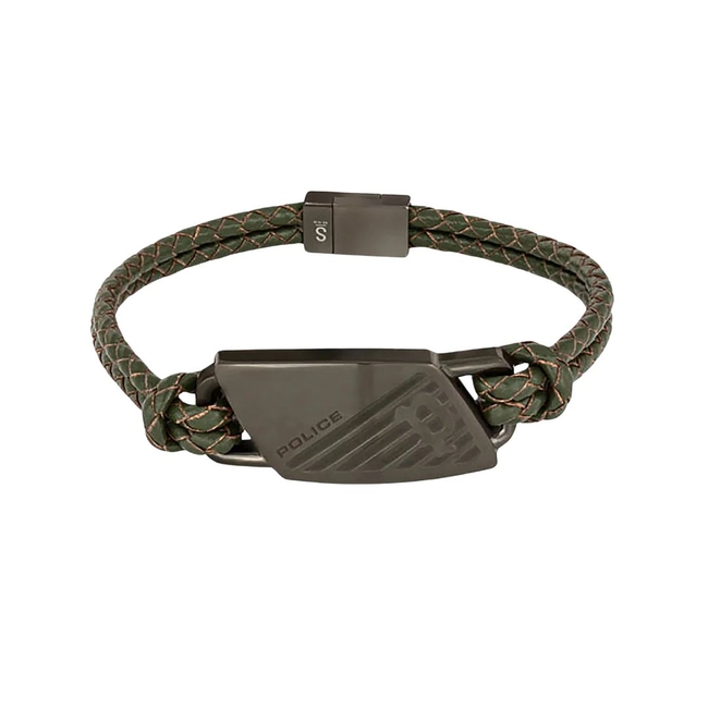 MAN BRACELET POLICE PJ26559BLU.03 (19CM ). Material: LEATHER. Colour: GREEN. Measures: 19CM.. .