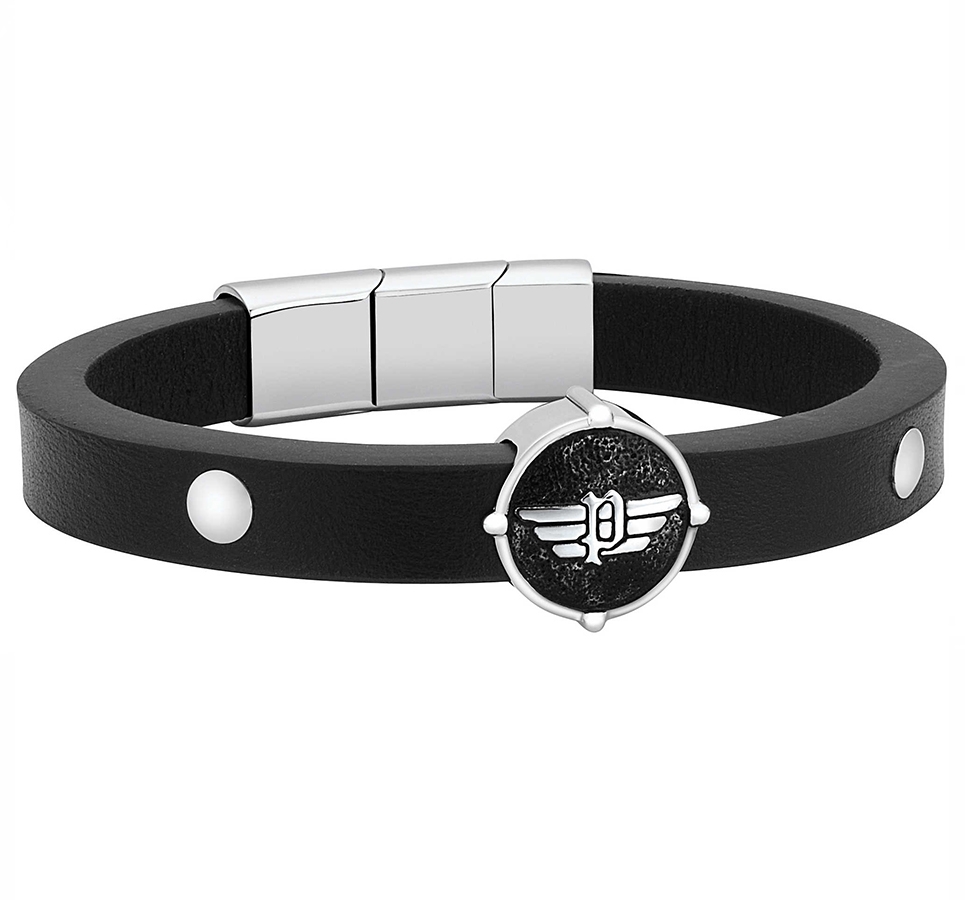 Ανδρικό Βραχιόλι Police S14Amk01B (23cm) από Ατσάλι/Δερμάτινο Black, Silver