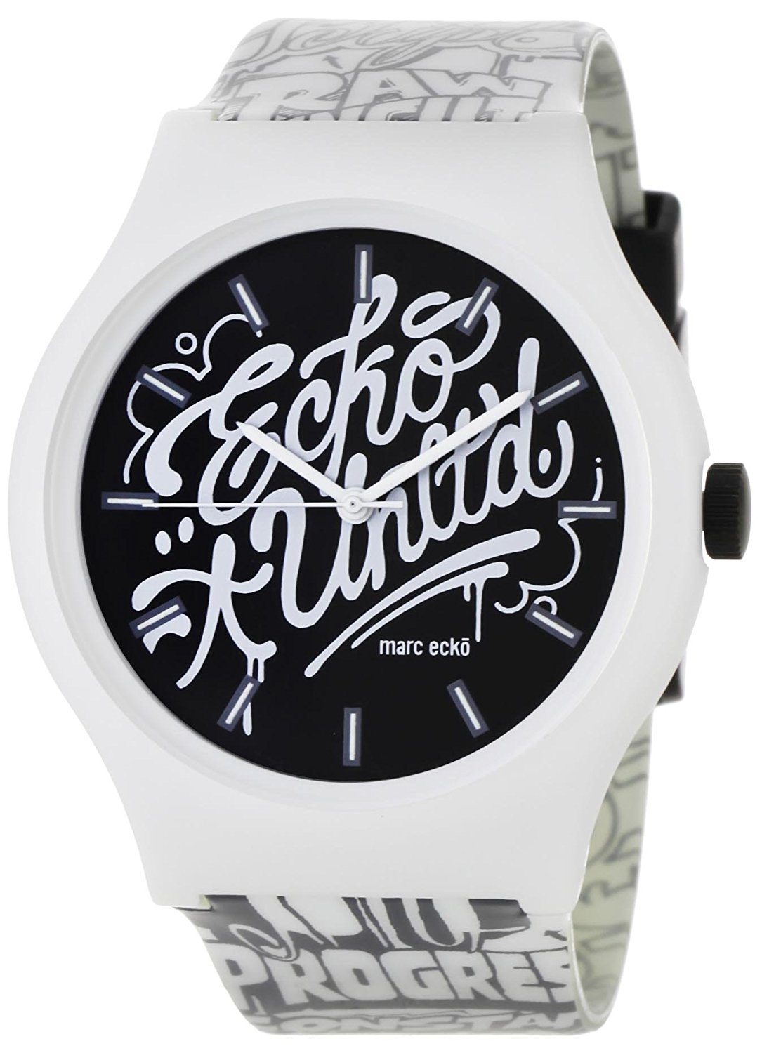 MAN WATCH MARC ECKO E06515M1 (42MM). Type of mechanism: QUARTZ. Display: ANALOGIC. Material of case: PLASTIC. Colour of case: WHITE. Material of bracelet: RUBBER. Colour of bracelet: WHITE. Dial Colour: BLACK. Glass type: MINERAL. Clousure: BUCKLE. Diameter of dial: 42MM. Submersible: 5ATM