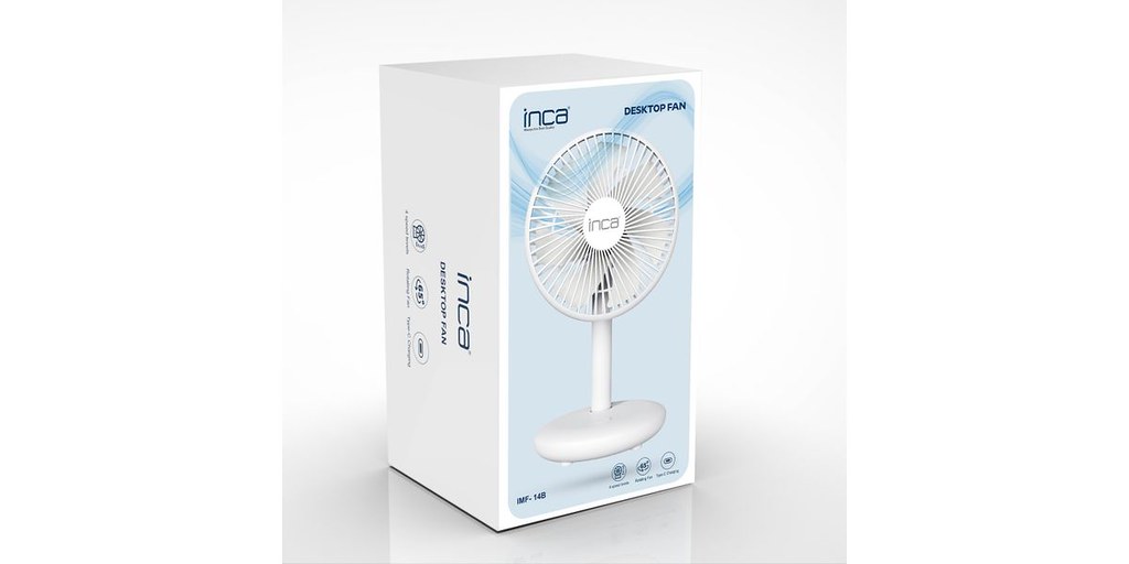 With low power consumption of only 6 watts, the INCA IMF-14B is energy-efficient, requiring approximately 2 to 2.5 hours for a full charge. Once charged, the fan provides 3 to 5 hours of usage.