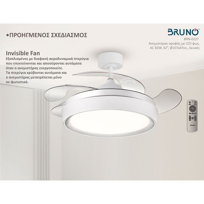 Ανεμιστήρας Οροφής Bruno BRN-0227 με LED Φως, Ac 82W, 42", O107X47Εκ., Λευκός
