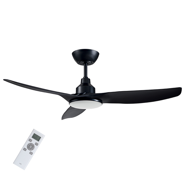 Design and Color: Featuring a modern design, this fan has a black body complemented by wooden-toned blades, making it a stylish addition to various interior styles.