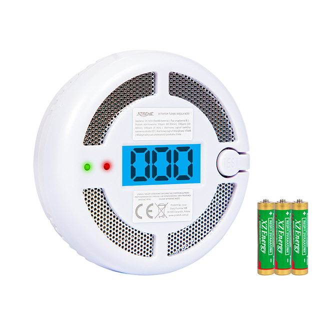 The Carbon Monoxide Detector XC50 3xAAA XTREME is a compact and standalone safety device designed to detect dangerous levels of carbon monoxide (CO). CO is a colorless, odorless, and tasteless gas that poses serious health risks. This detector is essential for ensuring the safety of your residential or light commercial space.
