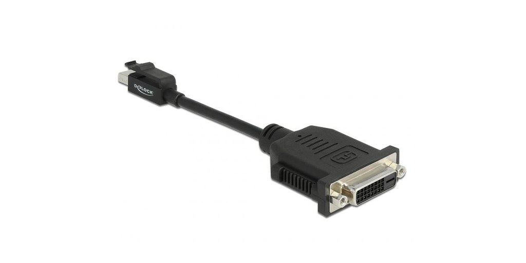 - 1 x Mini DisplayPort male with latch, 1 x DVI 24+5 female (DVI-D Single Link)