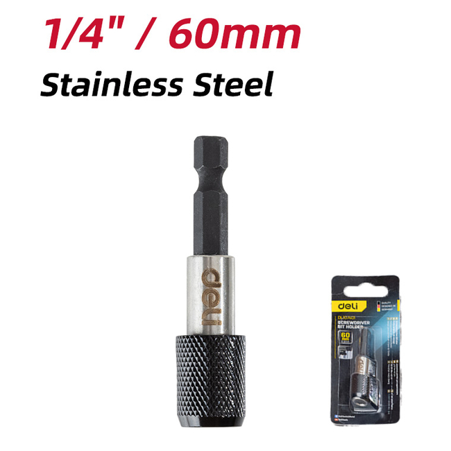 Αντάπτορας της DELI με εξάγωνη υποδοχή για την τοποθέτηση μυτών κατσαβιδιού. Είναι κατάλληλος για χρήση με με δράπανο ή ηλεκτρικό κατσαβίδι.