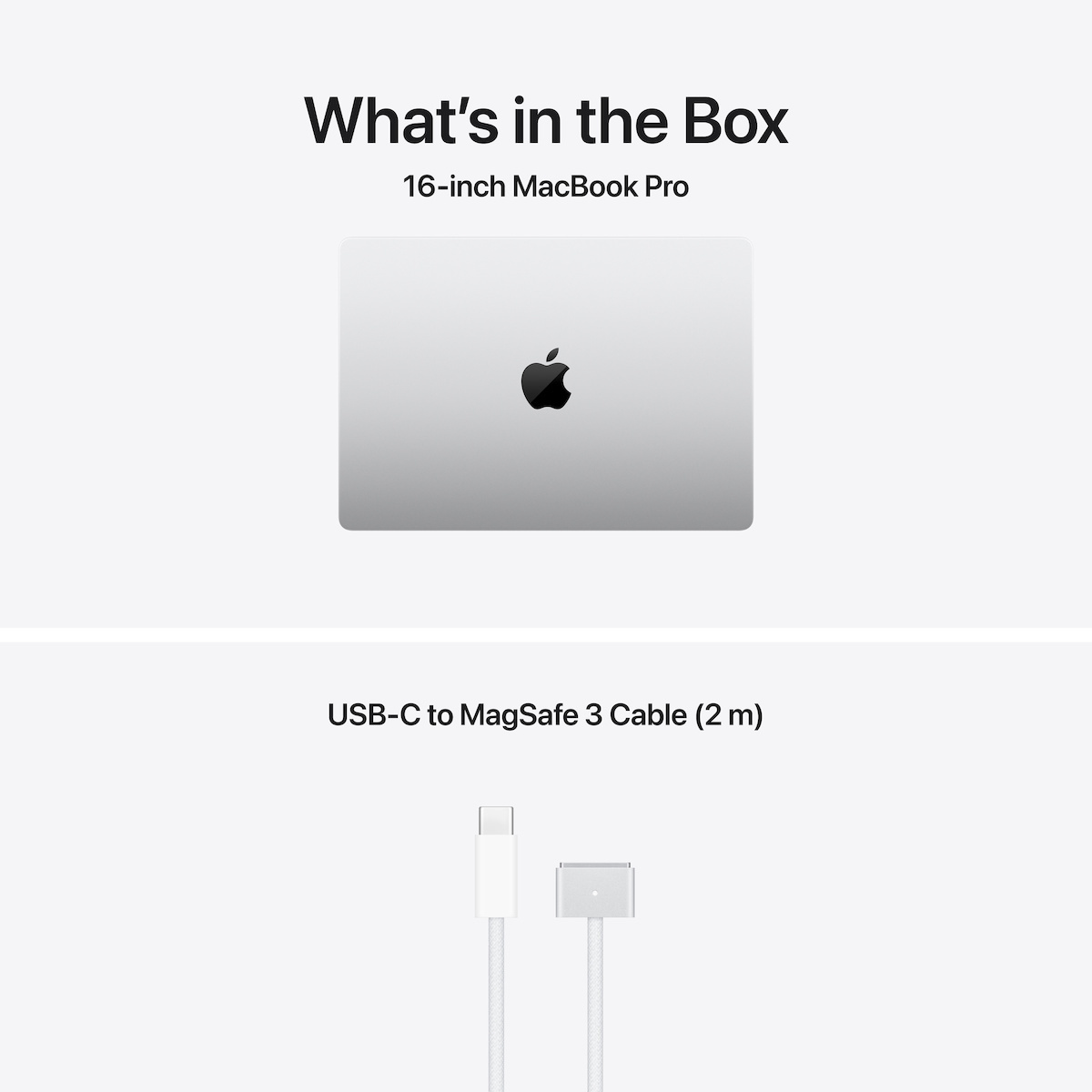 Included Accessories16-inch MacBook Pro, USB-C to MagSafe 3 Cable 2m, 140W USB-C Power Adapter, polishing cloth