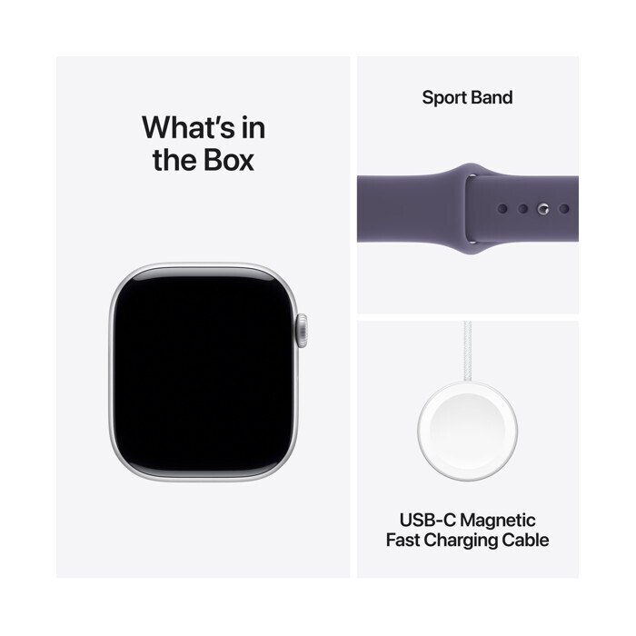 Apple Watch Series 11 Aluminium 42mm Αδιάβροχο με Παλμογράφο (Silver Aluminium Case with Purple Fog Sport Band - M/L)