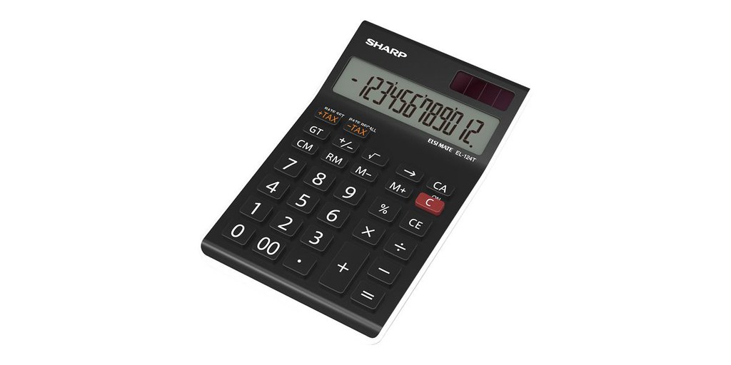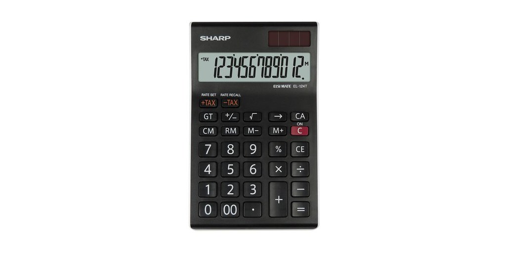 The Sharp EL-124 TWH is an efficient desktop calculator ideal for office use. It features a large, user-friendly 12-digit angled LCD display that enhances readability and minimizes eye strain during calculations.