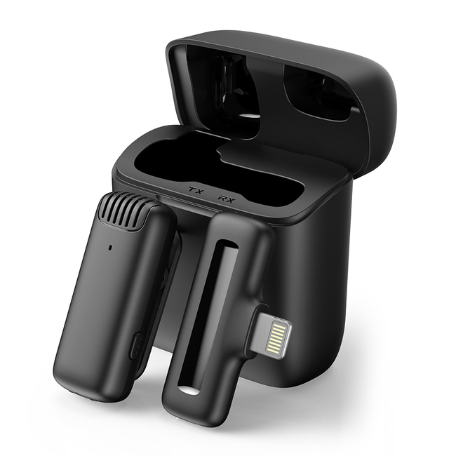 Ασύρματο Μικρόφωνο Apexel APL-MIC013 με Θήκη φόρτισης, Lightning, 2.4GHz, Μαύρο