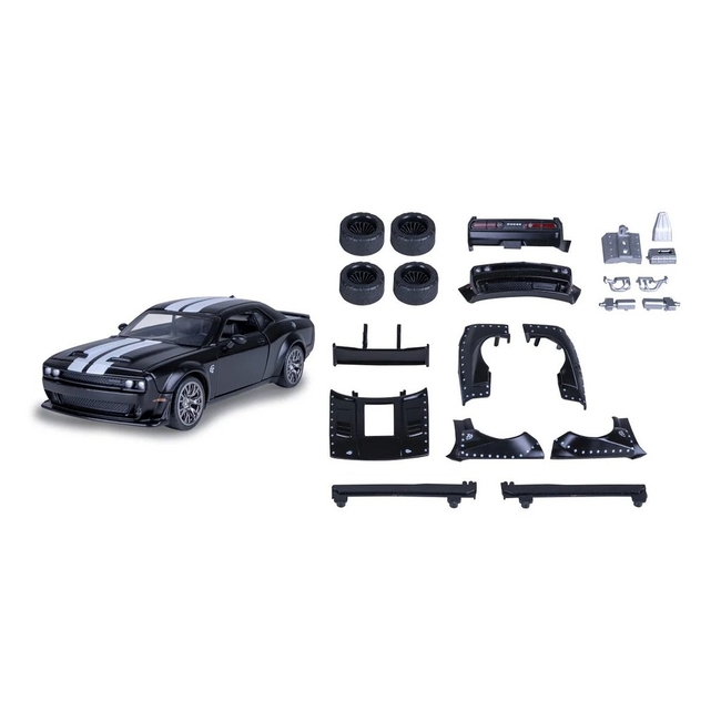 The Jamara Dodge Challenger SRT Jailbreak 2in1 is a stunningly detailed diecast model car that faithfully represents the legendary American muscle car at a 1:36 scale. This special edition model is inspired by the Jailbreak variant, equipped with the powerful HEMI V8 engine delivering over 800 horsepower, providing an authentic muscle car experience.