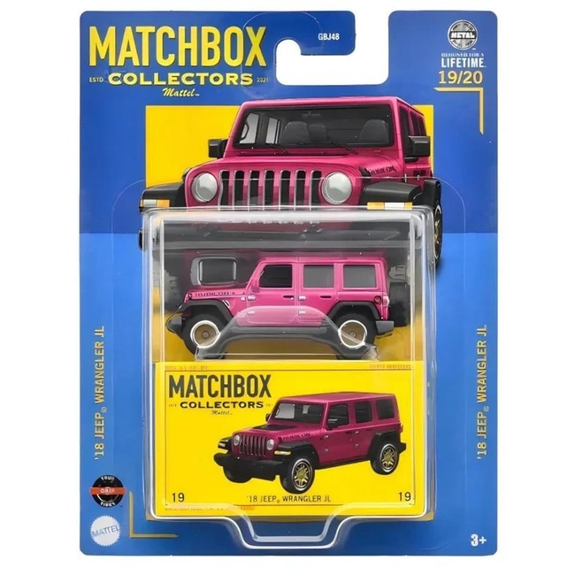 The 18 Jeep Wrangler JL from the Matchbox Collectors series is a meticulously crafted die-cast model that captures the essence of the iconic Jeep Wrangler JL. This miniature replica is part of the 2024 collection and features detailed design elements that make it a standout in any collection.